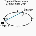 24 novembre 2014, par Marc CerbèreVoici que se forme une phase planétaire toute d’ouverture et d’originalité avec un trigone Vénus-Uranus, le 27 novembre sur les 12°49’, entre le signe du Sagittaire et celui du Bélier, dont la portée va peu ou prou du 26 au 2 décembre 2014 ; ce trigone avoisine en date avec la conjonction Mercure-Saturne du 26, mais sa nature n’est pas la même, son registre d’influence non plus, l’une ne découlant pas de l’autre, et vice versa. Quoique. C’est qu’en effet après une réflexion, un recul [Mercure-Saturne], on (...)