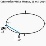 13 mai 2014, par Marc CerbèreA la suite du trigone Mercure-Mars du 12, voici une plutôt sympathique conjonction Vénus-Uranus sur les 15° [14°49’] du signe du Bélier, le 16 mai 2014 vers 1h54’ à la pendule. L’orbe d’influence de cette conjonction va peu ou prou jusqu’au 20 mai, mais couramment il faut s’attendre à un effet immédiat, de la veille au lendemain.