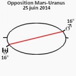 23 juin 2014, par Marc CerbèreMars forme une opposition avec Uranus sur les 16°13’ entre les signes de la Balance et du Bélier, dans la matinée du 25 juin 2014, vers les 10 heures [25’].