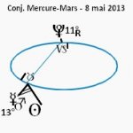 5 mai 2013, par Marc CerbèreVoici une semaine tonique avec la formation d’une conjonction Mercure-Mars en Taureau sur les 13°, le 8 mai ; à la suite le balayage de l’éclipse annulaire de Soleil du 9-10 mai et une conjonction Soleil-Mercure [21°], le 11 mai.