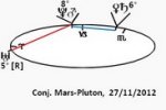 20 novembre 2012, par Marc CerbèreUne conjonction Mars-Pluton se forme en Capricorne le 27 novembre 2012 sur les 8°09’. Un cycle rapide qui possède une force extrême et dangereuse en nuisance de par son noyau d’agressivité [ souterraine ou manifeste], en forme de radicalité, de justice implacable [mise en examen, rendu de justice, règlement de compte, attentat suicide, etc.], parfois poussant à « l’irréparable » lors d’un passage à l’acte.
